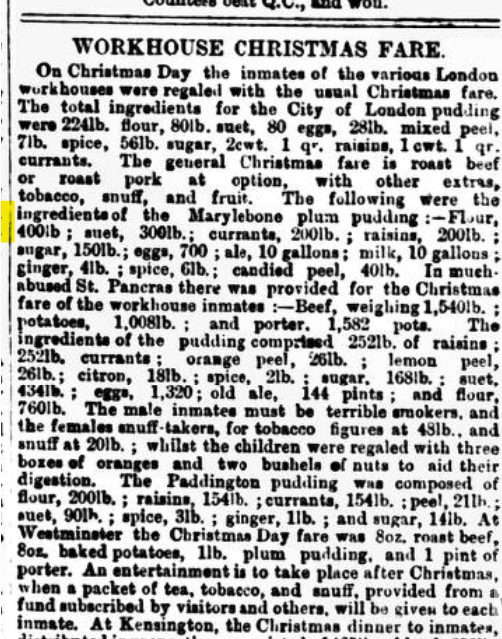 So I was surprised to come across this newspaper article from about a Victorian Christmas dinner at Knaresborough Workhouse: