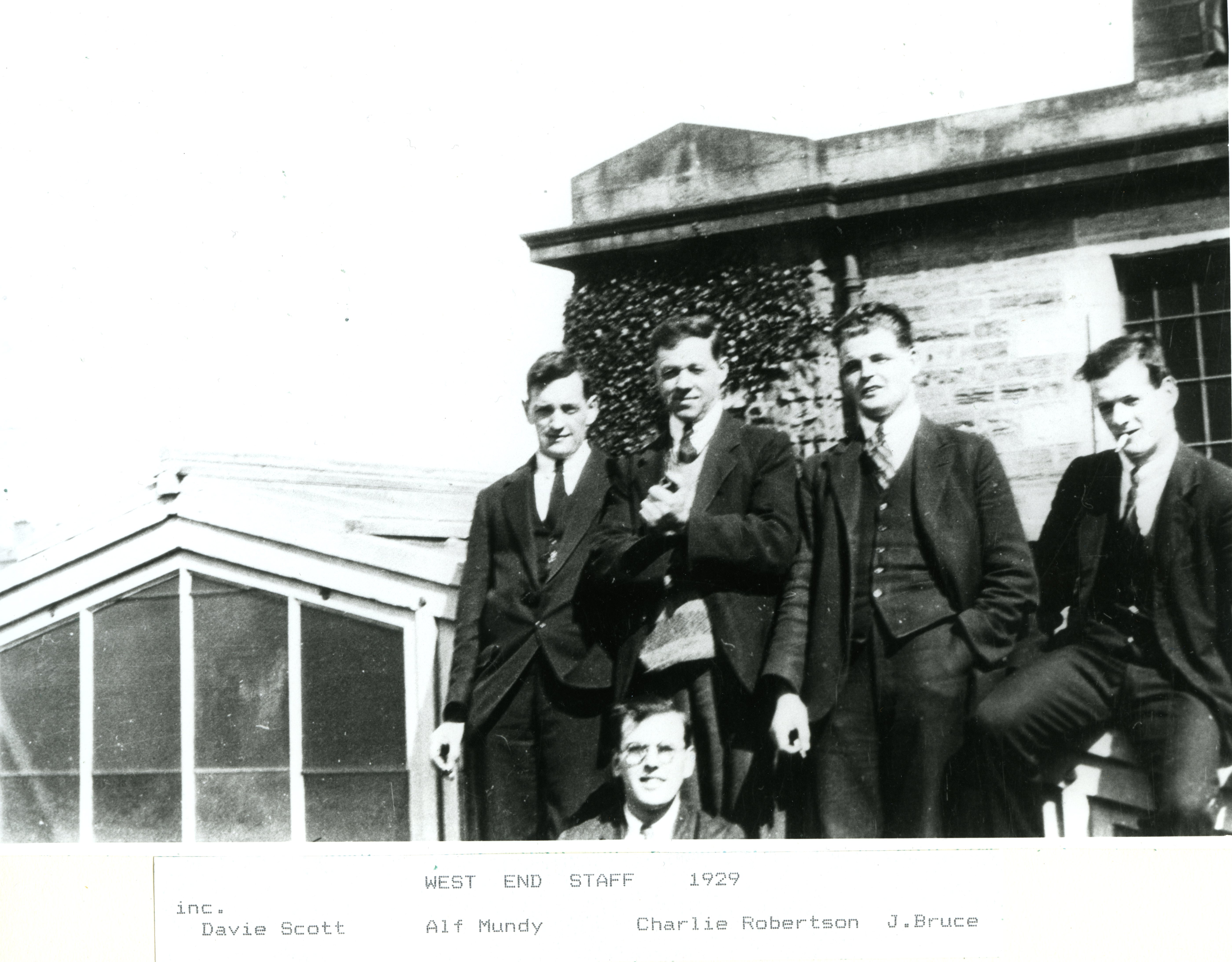 One of Alfred’s colleagues was Harry Bryce, and a collection of Harry’s photographs is in the RBGE Archives. Thanks to Harry’s legacy I was thrilled to see Alfred for the first time, in three photographs of him at work. In the first photo, Alfred is on the far right of the Horticultural Glass Department, 1920. They are clearly in their Sunday best! The second image shows the men in their work clothes the same year. Alfred is again on the far right, with Harry three to his left. The third image shows a group of staff in 1929, this time labelled with ‘Alf Munday’ standing the second from the left. All photos are reproduced here courtesy of the Archives, Royal Botanic Garden Edinburgh