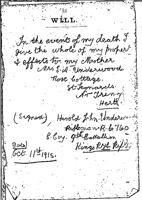 Eliza would also have received Harold’s possessions after his death, according to his military will. His hand-written note feels very personal and poignant.