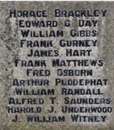 He’s also commemorated on the War Memorial in St. Leonardโs churchyard, Bucks. Another name on the memorial is also a relation of mine โ Fred Osborn (my great grandmother’s cousin).
