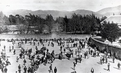 Most students were boarders from around the West and the Pacific, and even included three Hawaiian princes — nephews of Queen Kapiolani — and the first surfers in California! In 1882, the school moved to an 80-acre site “on the first rise of the foothill”. In 1891, Rev. Brewer’s son, The Rev. William Augustus Brewer, took over as headmaster, and by 1902 the school was called “the best known private educational institution upon the west coast.” When President Roosevelt visited Burlingame en route to San Francisco in 1903, the school’s cadets acted as Guard of Honor.