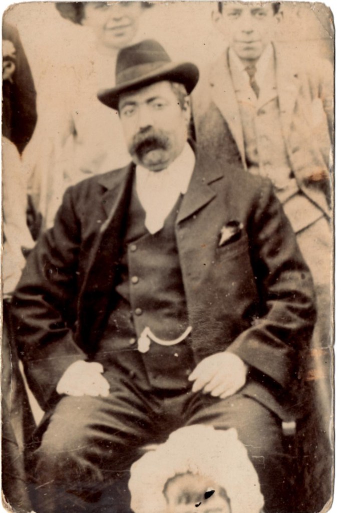 In 2020, I was able to connect with another of William’s descendants (my mum’s second cousin), Jane, who generously shared her excellent research report with me (it was very reassuring to find we had found the same key evidence and come to the same conclusions). Jane also kindly provided me with a photograph of our elusive ancestor, William Taylor aka Frederick Homan; he was a rather solid man wearing a bowler hat and sporting a thick mustache. Presumably he’s surrounded by some of his children. I also have one picture of Edith in my own collection. She lived until 1968, and reached the age of 88.