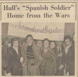 There were cheers when he walked through the barriers from the London train, still wearing the brown beret of the Brigade, and a scarf in Spanish Republican colours knitted for him by a senorita. Preceded by the Spanish flag, and under a banner inscribed “Welcome Home to Our International Brigadier,” he marched at the head of aprocession through the streets. His mother and sister welcomed him with delight. But there was another mother in the crowd who wept from disappointment. Joe Latus, another Hull man, was to have been on the same train. But, after surviving the front line, he caught fever on the way to the French border, and has been left behind in a Spanish hospital.