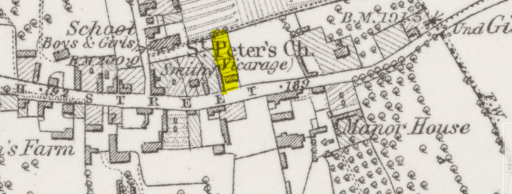 The first OS map of Berkshire was published in 1883 (from a survey in 1878). Drayton’s Smithy is labelled, and the land extends back beyond the churchyard, in an area that has since been used as an extension to the parish burial ground.