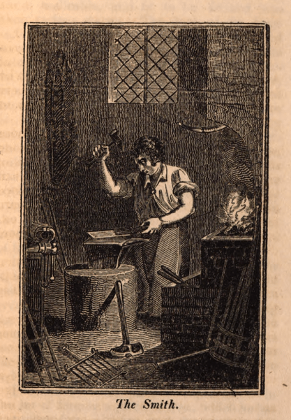 ‘The Smith’, in The book of English trades : and library of the useful arts : with seventy engravings (1818, reprinted 1956); also available online via HathiTrust