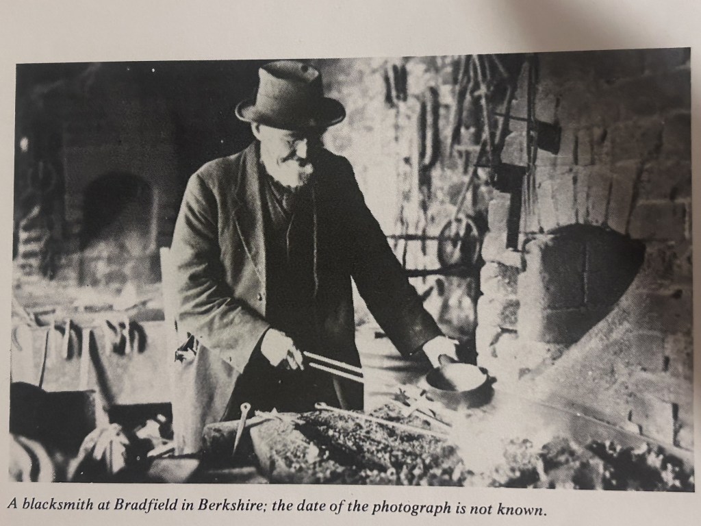 Villages of the White Horse, written, aptly, by Alfred White, in 1913, includes delightful descriptions of local characters — including a blacksmith, and a carpenter who was appointed Constable. Although that’s 50 years later, it helps me picture Joseph at work, and even to hear what he might have sounded like: