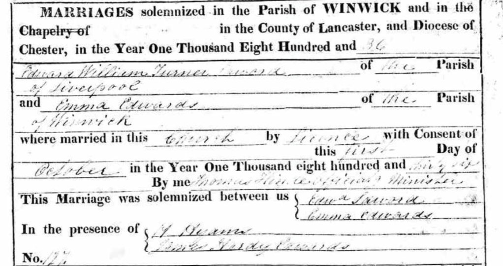 The family did not have deep roots in Kentish Town. Edward came from a respected Greenwich family, and had married his first wife in Cheshire. The family had lived for several years in Liverpool and Birkenhead. After Emmaโs death, Edward remarried to Sarah Gibson, who was 20 years younger than him and had recently immigrated from Ireland to Liverpool. In 1851, the newly-weds, with two children from Edwardโs first marriage and one new baby, had emigrated from Liverpool to Boston, intending to settle in America. But by 1853 they had returned to England and made their home in London. More children quickly followed.