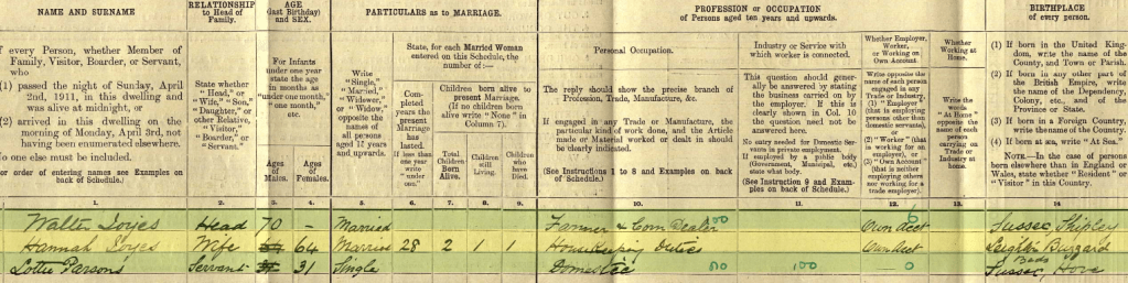 Hannah and Walter lived at Hereford House on Station Road, Billingshurst, Sussex. They enjoyed 37 years of married life until Hannah’s death in 1919, aged 72. She and Walter share a grave at St Maryโs, Billingshurst.