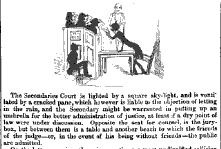Punch magazine poked fun at the shabby Secondaries Court in 1842: โThe structure itself is decidedly rude, but the clerks inside are ruder.โ The full article is great fun.