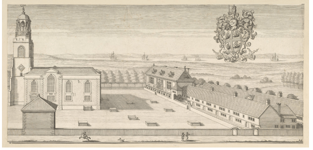 St Nicholas, Deptford, c1750 showing the churchโs proximity to the river.